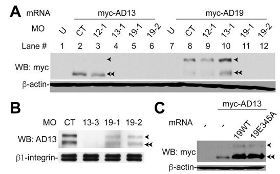 various MOs on exogenously expressed ADAM13 and ADAM19. Embryos