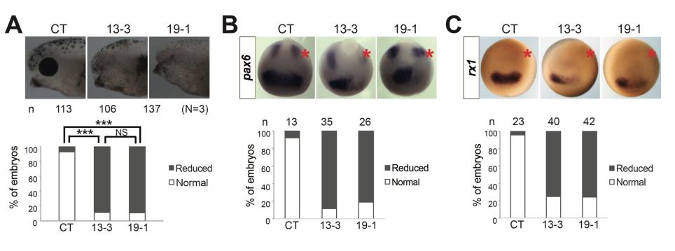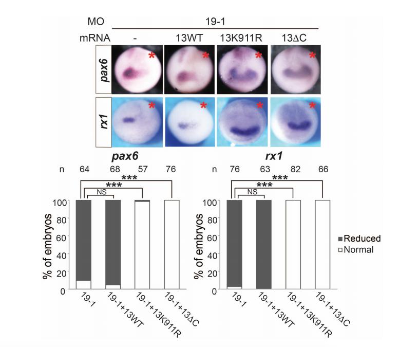 ADAM13 or 19 KD on the expression of eye field markers. Embryos were injected in one