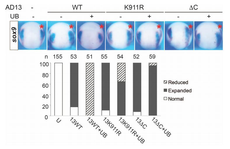 indicated mRNA (100 pg each) and the plasmid encoding FLAG-tagged ubiquitin (UB; 2.5 pg).