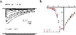 pylT enables the faithful encoding of lysine into position K1237 of rNav 1.4. (a) Example traces of rNav 1.4-K1237TAG cRNA coinjected with either lysine-acylated (top) or unacylated full length (bottom) PylT. Oocytes were held at −100 mV and pulsed from −80 mV to +40 mV with 30 ms depolarizing steps. Voltage gated sodium channel activity is evidenced by increasingly large downward deflections in the traces in response to depolarization. The level of zero current for each cell is indicated by a dashed line. (b) Normalized current-voltage relationship plots comparing the WT rNav 1.4 channel to that of the rNav 1.4 K1237TAG rescued with lysine.