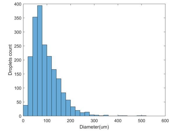 Author response image 4. Size distribution for 1997 droplets obtained using a specific vortexing speed and duration.