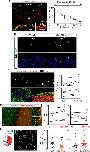 Fig 3 NMDA receptor signaling regulates neural plate cell proliferation and migration. A, Whole-mount, immunostained stage 13 through stage 18 embryos were imaged coronally and analyzed using Imaris 3D software. Top image shows a single plane of a representative z-stack image of the dorsal half of a stage 17 embryo. Bottom images are volume renderings of virtual transverse sections of the neural plate in which Sox2+ cells were identified and analyzed for PCNA expression. ne, Neural ectoderm; non-ne, non-neural ectoderm. The graph shows the percentage of neural plate cells (identified by Sox2 expression) immunopositive for PCNA; values are the mean ± SEM; n = 4â7 embryos per stage. The line connects data points at sequential developmental stages (bottom, x-axis) corresponding to different times postfertilization (top, x-axis). B, C, Images illustrate immunostained transverse sections from vehicle and d-AP5-treated embryos (5 h incubation starting at stage 13; B) or from unilaterally GluN1-Mo-injected embryos during neural plate folding (stage 18; C). Numbers on the top of the images in B are the number of PH3+ cells in 10 30-μm-thick sections of neural plate per embryo; values are the mean ± SEM, n = 9 embryos per group. *p < 0.05, t test. C, Graph shows the numbers of PH3+ cells in 10 30-μm-thick sections of WT and GluN1-Mo-containing halves of neural plate in individual embryos (stages 16â18). *p < 0.05, paired t test. D, E, Embryos were unilaterally injected with GluN1-Mo or control-Mo, and bilaterally with H2B-GFP mRNA at the two-cell stage and time-lapse imaged starting at stage 13 for 1.5 (D) and 2 (E) h. D, Image on left shows a single frame from a time-lapse series (Movie 2) of an embryo bilaterally expressing H2B-GFP (green) and unilaterally containing GluN1-Mo + tracer (red). Magnified images to the right depict a cell division (arrowheads). Graphs show the number of cell divisions during 1.5 h starting at stage 13 in contralateral and ipsilateral halves of neural plate as the percentage of total H2B-GFP cells in each side; n = 6 embryos per group. *p < 0.05, ns, not significant, paired t test. Scale bars: AâD, 20 μm. Lines in C and D connect paired data from the same embryo. E, The trajectories of individual H2B-GFP-labeled cells were measured in both halves of the neural plate of embryos unilaterally containing GluN1-Mo or control-Mo during a 2 h period starting at stage 13 (Movie 2). Drawing on the left depicts the trajectories of individual cells (circles with straight arrows), and the lateromedial movement of these same cells (segments) that is reported in the graph. Schematic in the middle shows an example of the trajectories of pairs of cells initially equidistant from the midline (dashed line) in WT and GluN1-Mo-containing halves of neural plate over 2 h with numbers positioned at time 0 of the trajectory. Graphs show lateromedial displacement for individual WT and GluN1-Mo- or Control-Mo-containing cells and the mean ± SEM; n ⥠50 cells, N = 3 embryos per group. ***p < 0.001, t test. P, Posterior; A, anterior. |