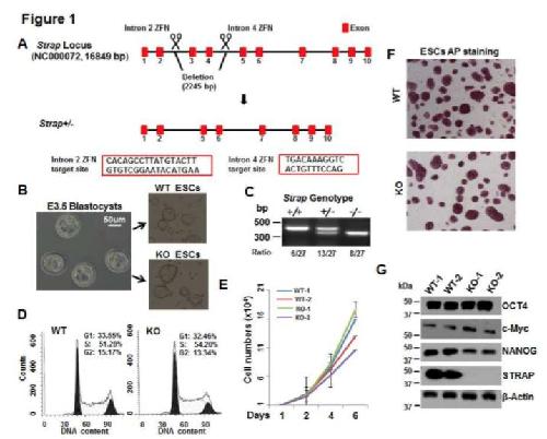 Figure 1. Strap depletion has no effect on the morphology or viability of ESCs. A. Schematic representation of the