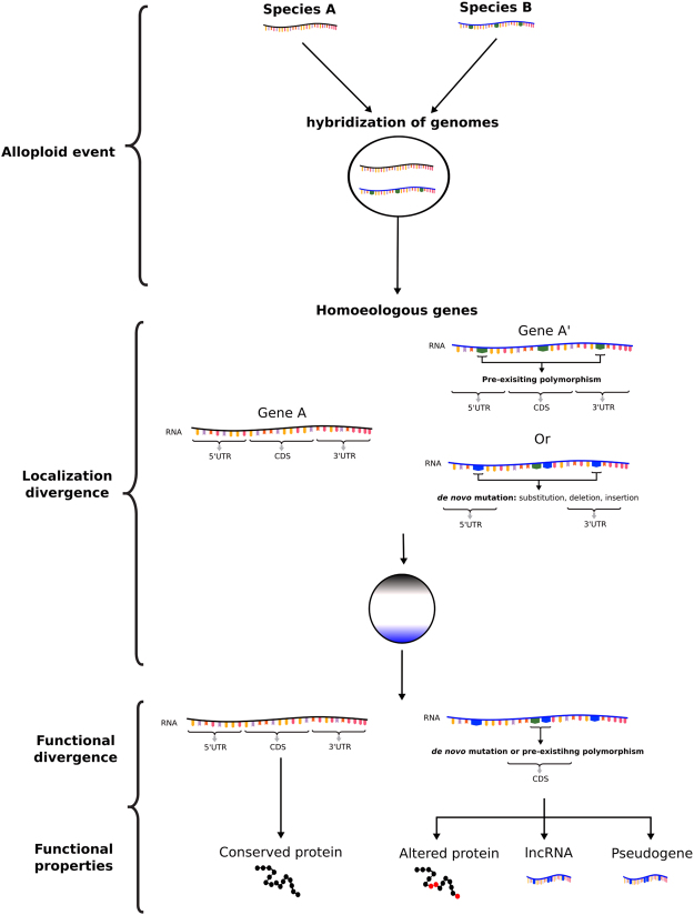Figure 8. Scheme proposing altered gene function development based on species hybridization followed by asymmetric localization and modification of coding sequence.