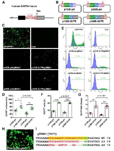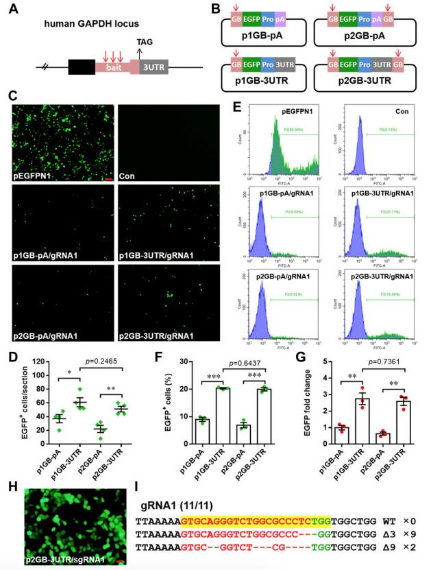 of Cas9/gRNA-GGN18. C, D) p2M6B-3UTR plasmid (200 pg/egg), L2M6B-3UTR (200 pg/egg), and linear EGFP cassette with