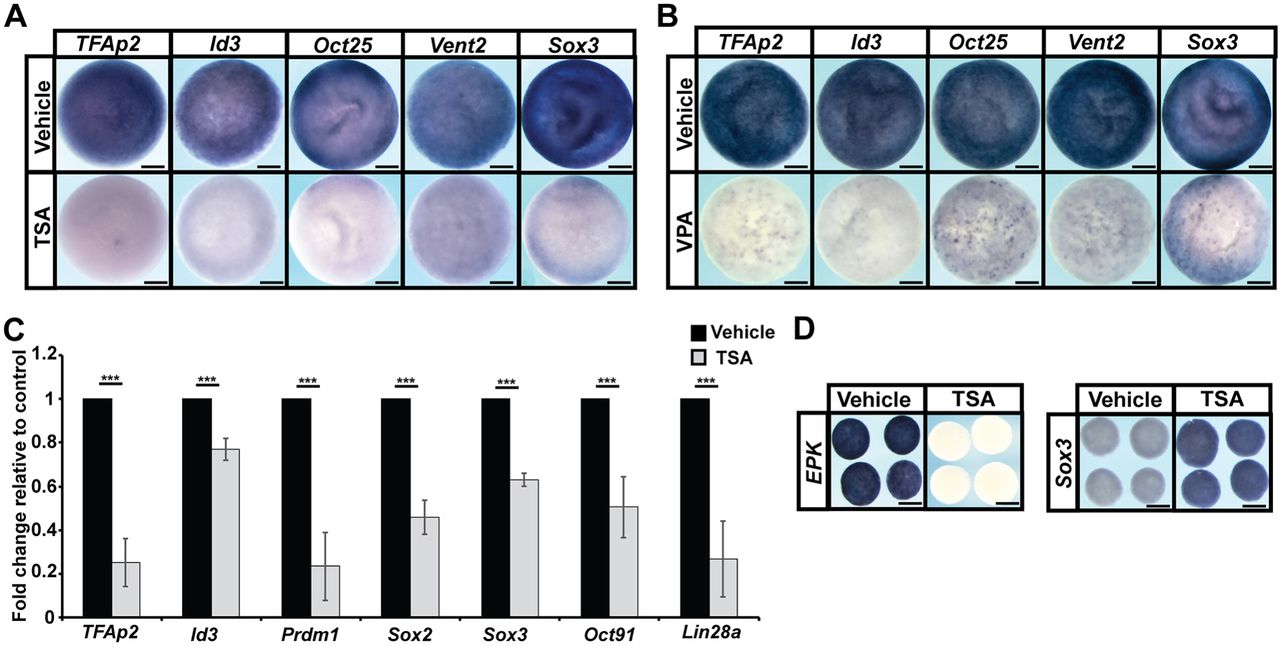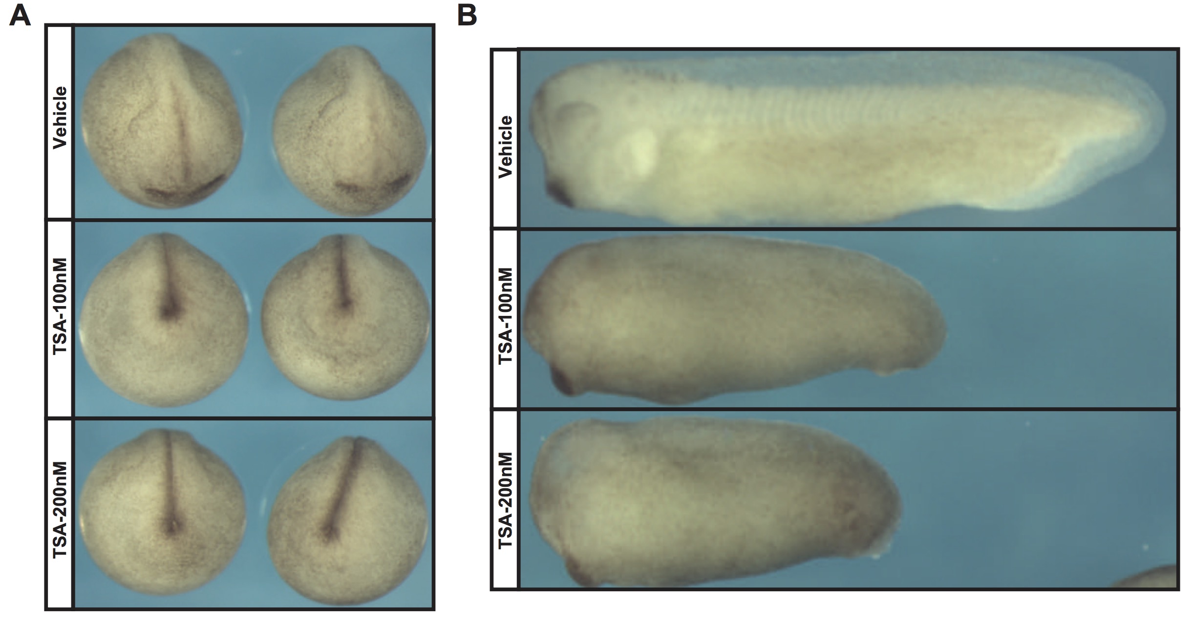 concentrations of TSA (100nM, 200nM). Embryos were treated at mid-gastrula stages (stage 11).