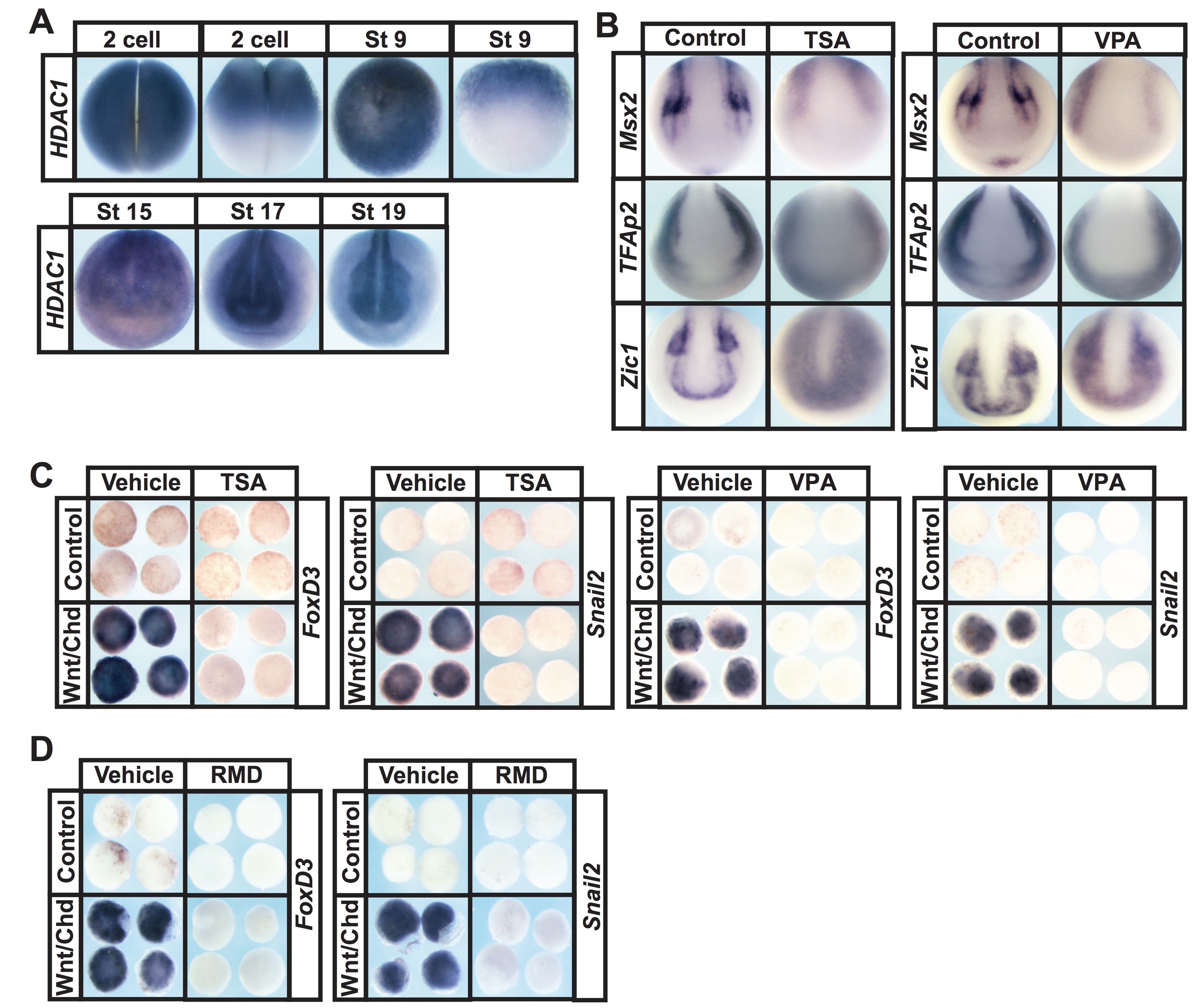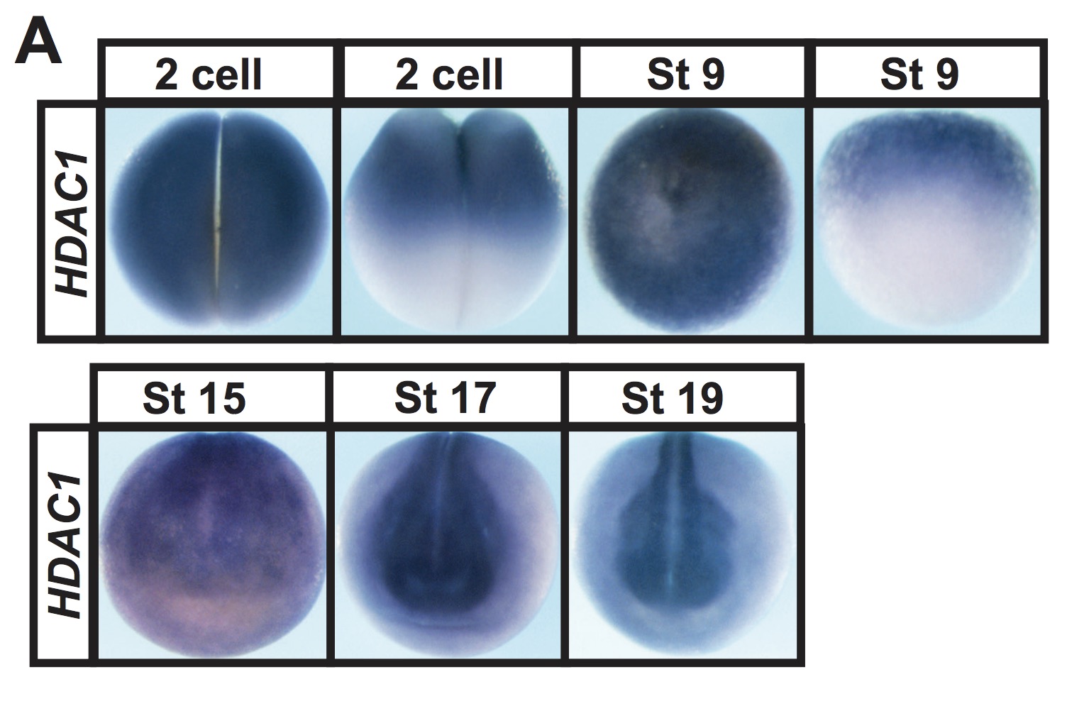 Supplementary Figure 2. (A) In situ hybridization examining HDAC1 expression in early embryos from 2-cell to late neurula stages.