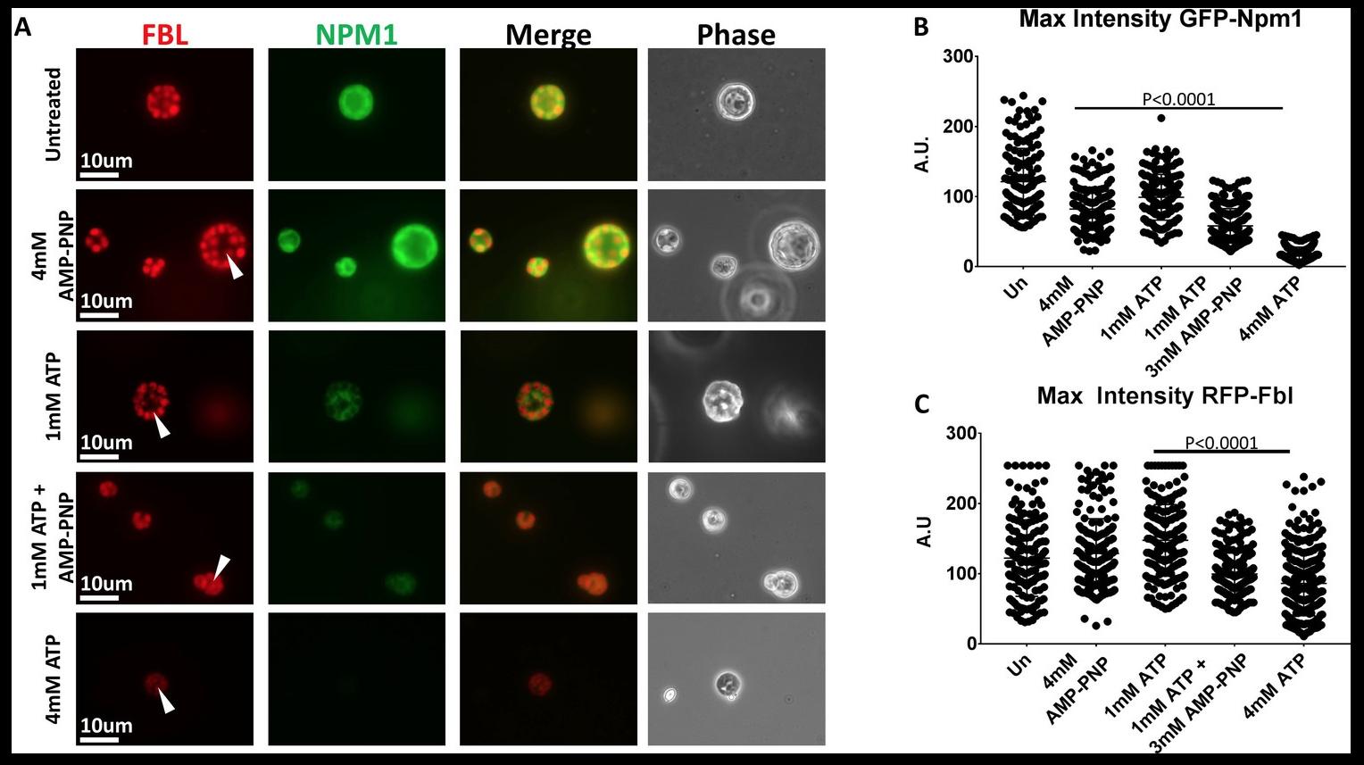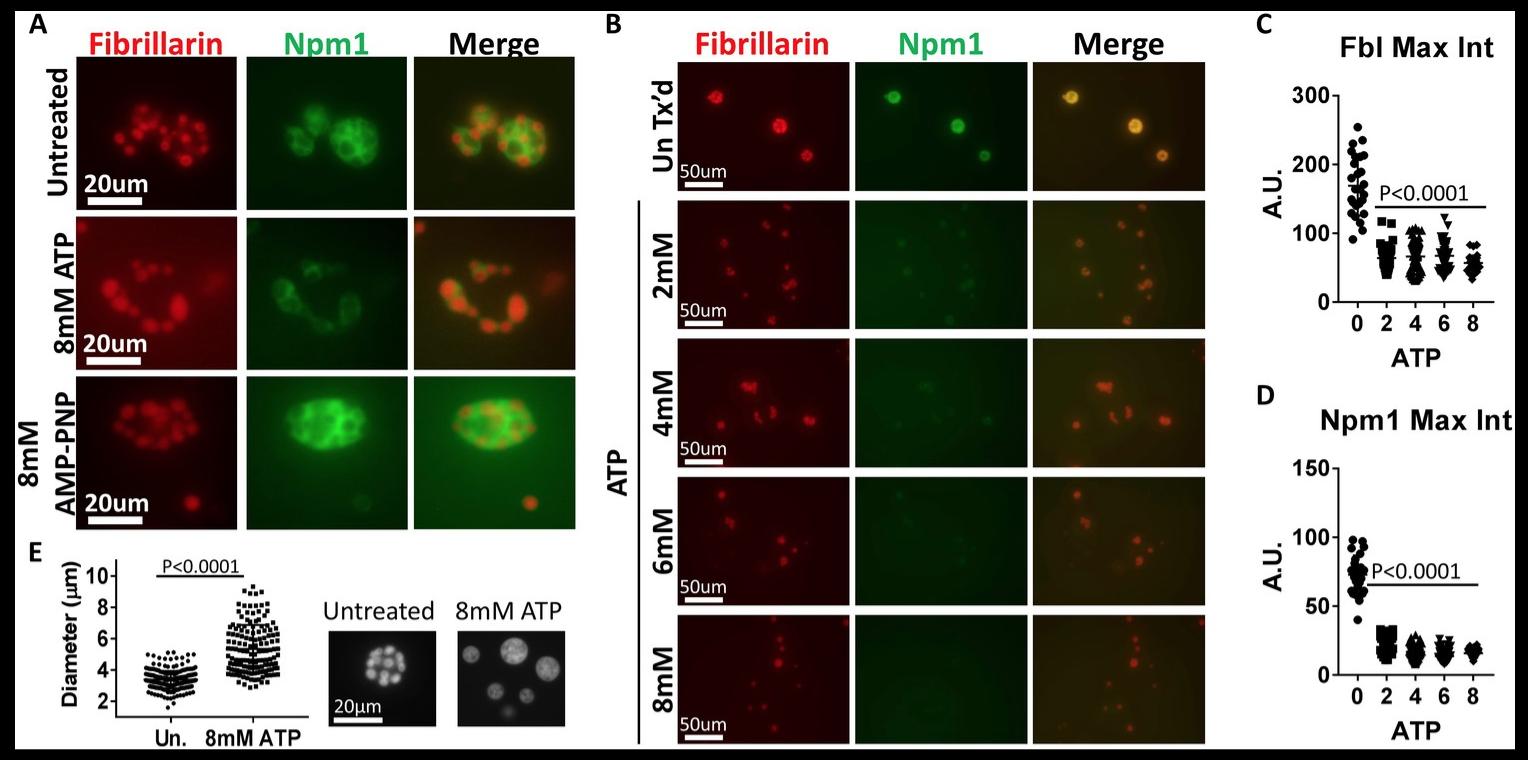 Dual roles for ATP in the regulation of phase separated protein aggregates in Xenopus oocyte nucleoli.