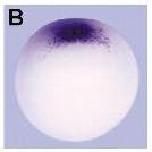 chrd.1 (chordin, gene 1) gene expression in Xenopus laevis embryo, assayed via in situ hybridization, NF stage 10.25, vegetal view, dorsal up.