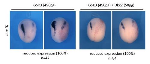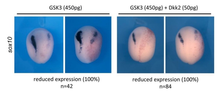injection of Dkk2SMO (30 ng) reduced sox10 expression a phenotype that cannot be rescued by BIO treatment. In contrast the Wnt inhibitory activity of