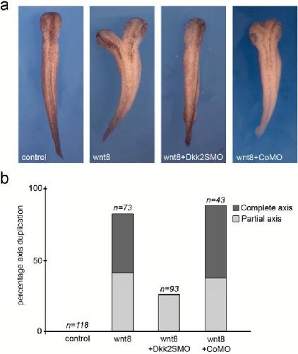 Figure supplement 1. Dkk2 function is required for dorsal axis duplication by Wnt8.