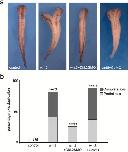 of the lineage tracer (Red-Gal). Dorsal views, anterior to top. (b) Quantification of the phenotypes. The number of embryos analyzed (n) is indicated on