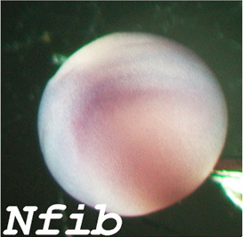 nfib (nuclear factor I B) gene expression in transverse section of Xenopus laevis embryo, assayed via in situ hybridization, NF stage 20, dorsal up.