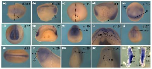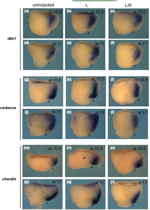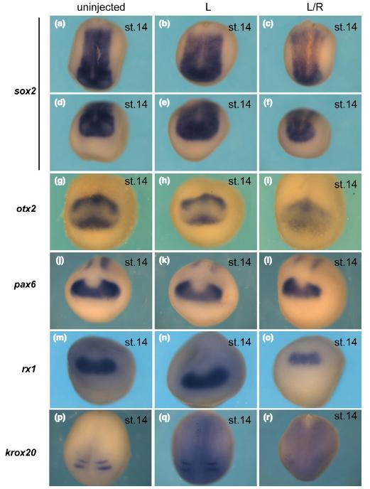 Genes referenced: cer1 chrd ctnnb1 dkk1 egr2 eomes gsc hes4 nog nppa otx2 p2ry4 pax6 rax snai1 sox2 sst tbxt