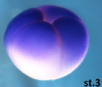 znf367(zinc finger protein 367) gene expression in Xenopus laevis embryo, assayed via in situ hybridization, NF stage 3, horizontal view, animal up.