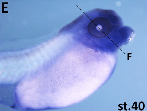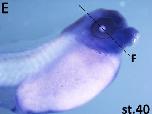 znf367 (zinc finger protein 367) gene expression in Xenopus laevis embryo, assayed via in situ hybridization, NF stage 40, lateral view, anterior right, dorsal up.
