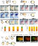 Fig. 3. gli2 requirement in NC specification. (BâG, IâN, PâU) Dorsal views of Xenopus laevis embryos at mid-neurula stage; anterior side is on the left. Arrowheads indicate the injected side (turquoise). The expression of the genes is shown in purple. (A) Graphic representation of the experiments. (BâD) gli2MO-injected embryos show reduced expression of the NC markers foxd3 (B), snail2 (C) and sox9 (D). (EâG) Increase in the expression of the NP marker sox2 and the epidermal marker xk81a after gli2MO injection. Figure G shows a double ISH of sox2 and xk81a, with brackets indicating the width of the NC domain. (IâN) The opposite effect is seen when gli2 is overexpressed in the NC territory. (H, O) Quantification of gli2MO and of gli2 mRNA effects on the expression of NC markers, respectively. (PâQ) Overexpression of gli2 with the construct α3000gli2 produced an increase in the expression of foxd3 and snail2. (RâS) Control of morpholino specificity. Coinjection of gli2MO morpholino along with a plasmid encoding a mutated gli2 at the morpholino binding site (CRgli2) rescued the expression of the NC markers foxd3 and snail2. (T) The injection of the α3000CRgli2 construct also rescued foxd3 expression. (U) The microinjection of CoMO did not alter foxd3 expression. (V) Quantification of the experiments shown in Fig. 3PâU.