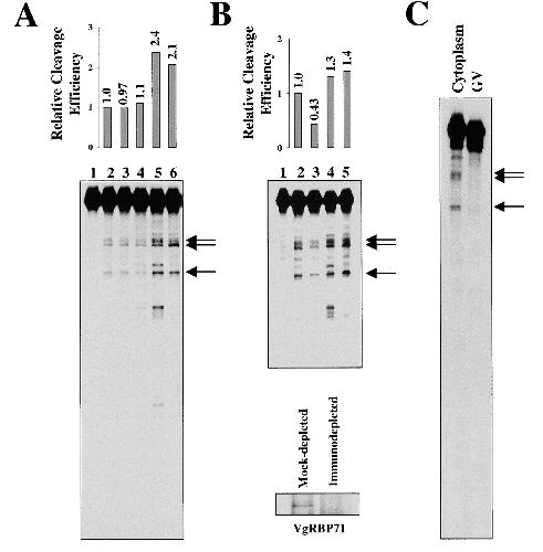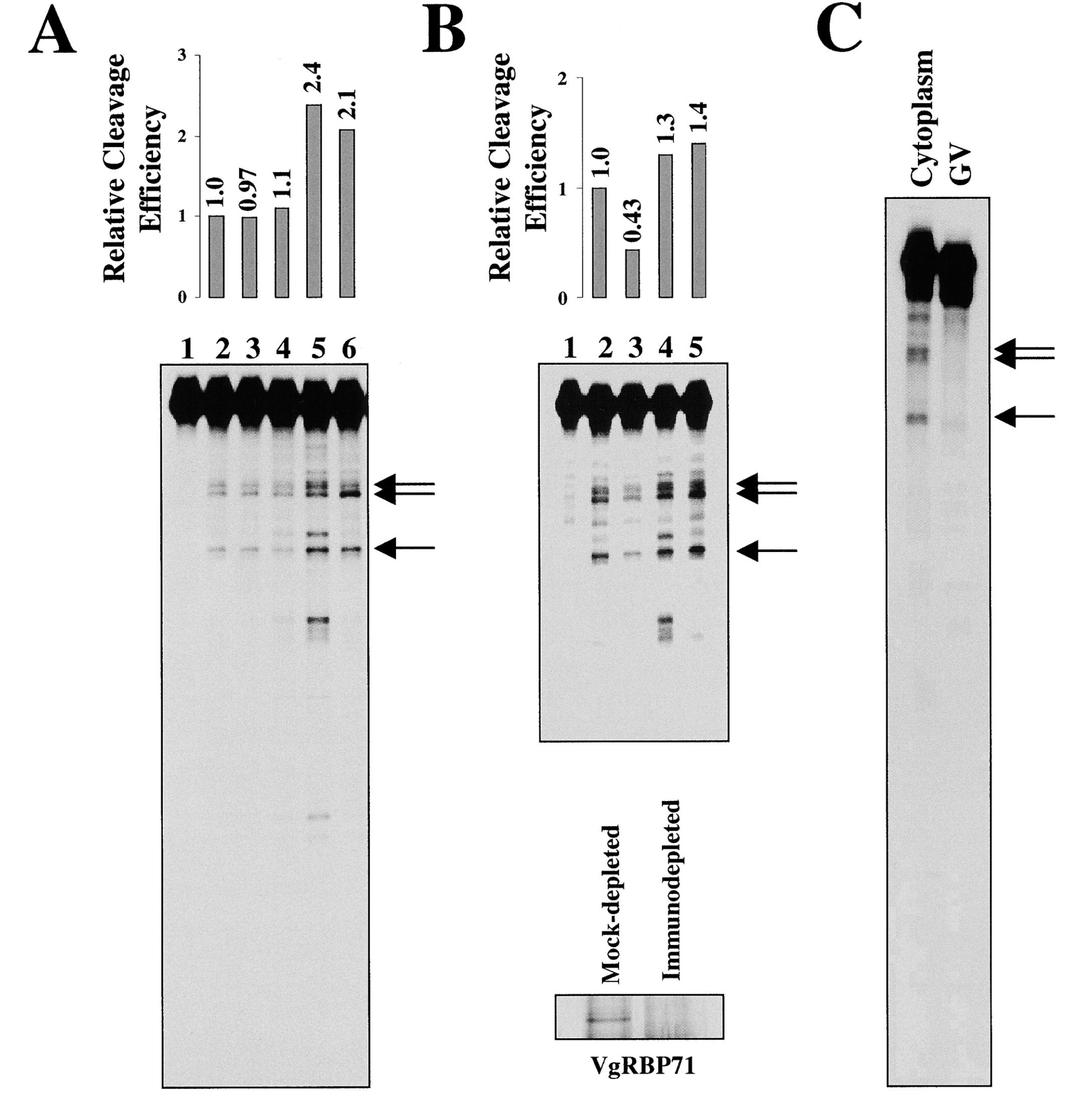 Figure 4. VgRBP71 Stimulates Cleavage of Vg1 mRNA in Oocyte Extract