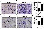 Figure 5. Overexpression of TPX2 promotes the migration of LNCaP and PC3 cells. A Transwell assay was used to detect migration in (A) LNCaP-NC and (B) LNCaP-TPX2 cells. (C) The migration cell number in LNCaP-TPX2 group was 366.7±24.44, while it was 117.3±48.39 in LNCaP-NC group (P=0.022). A Transwell assay was also performed in (D) PC3-NC and (E) PC3-TPX2 cells. (F) The migration cell number in PC3-TPX2 group was increased compared with the PC3-NC group (260.0±8.0 vs. 150.7±18.04; P=0.041). Magnification of all images, Ã400. TPX2, Targeting protein for Xenopus kinesin-like protein 2; PCa, prostate cancer; NC, negative control. *P<0.05.