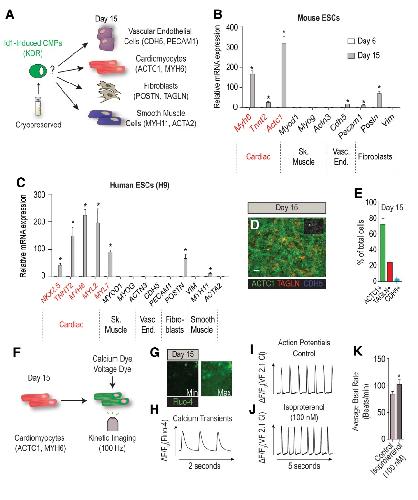 Id1-overexpressing h9 hESCs in control conditions (I) or in response to isoproterenol (J) measured optically with VF2.1 Cl. (K) Beat rate