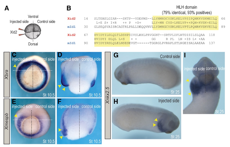 mount and probed for Xnkx2.5 expression. Yellow arrowheads indicate an expansion of the Xnkx2.5 domain in the Xid2-injected