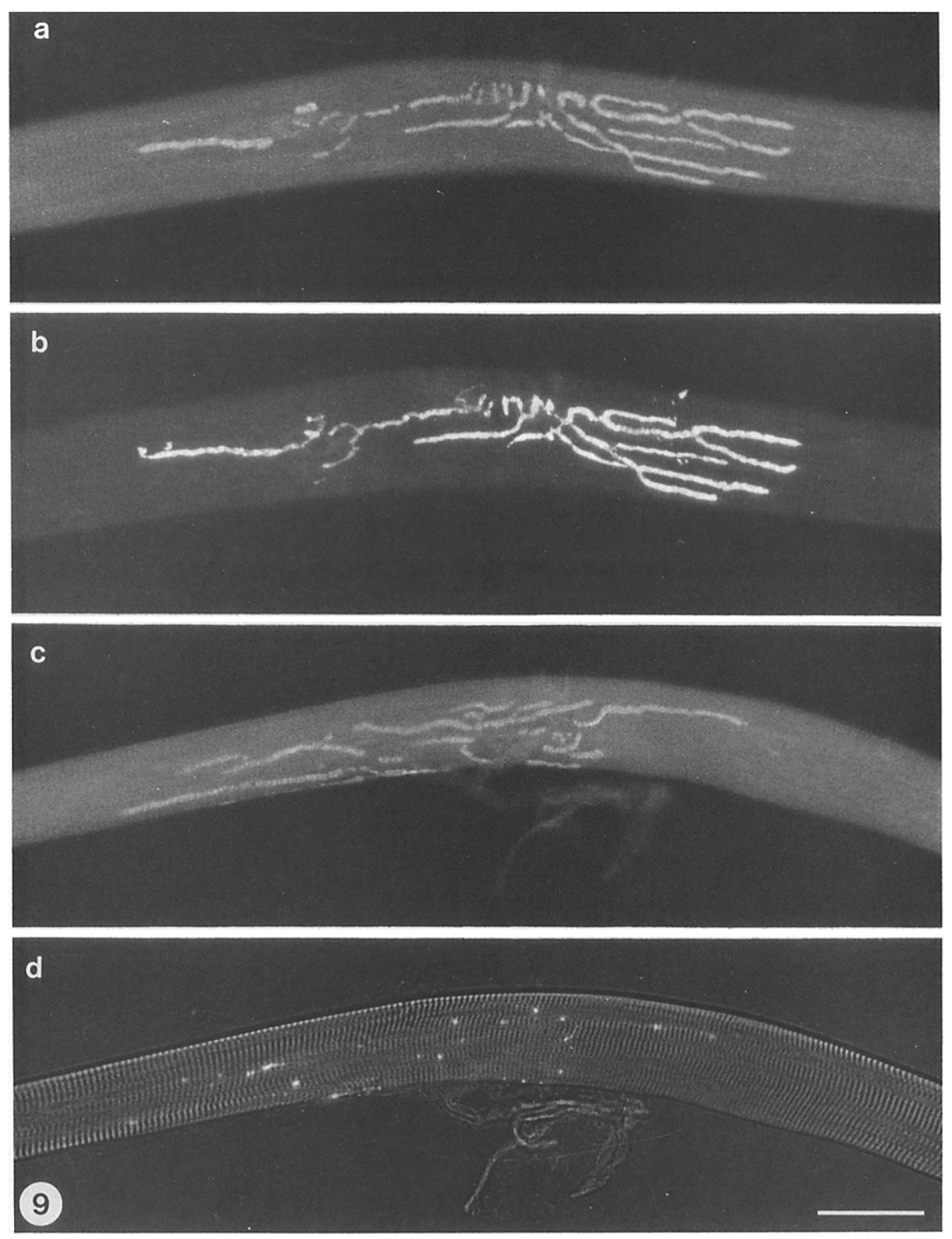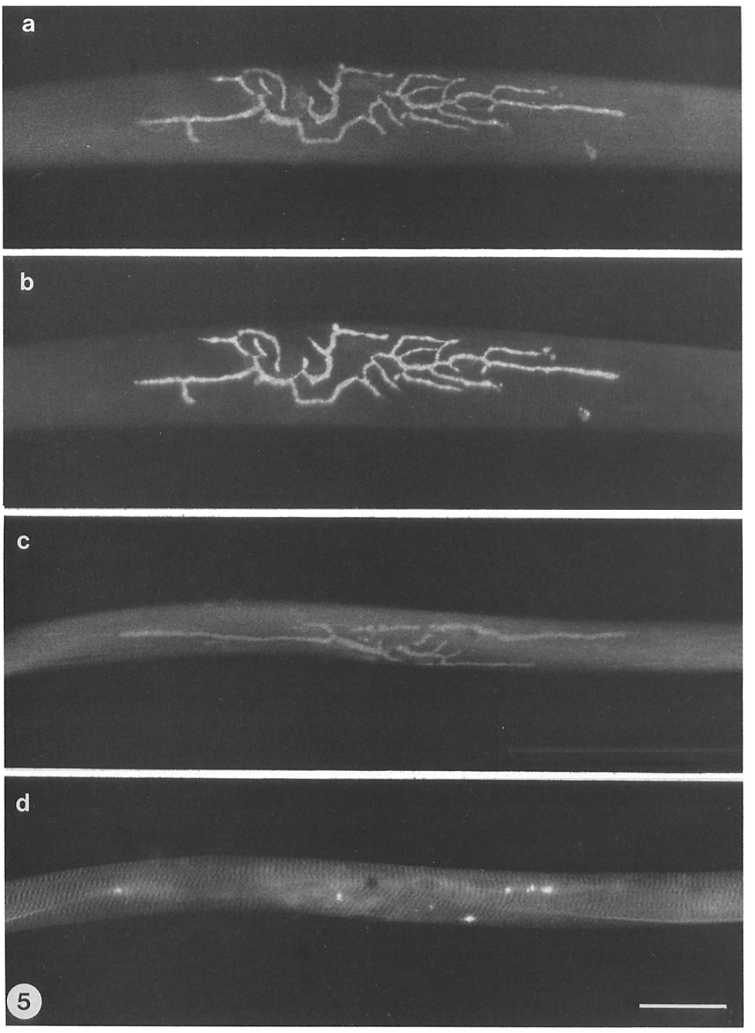 Figure 5. Fluorescence micrographs of resting neuromuscular junctions on single muscle fibers teased apart from frog cutaneous pectoris