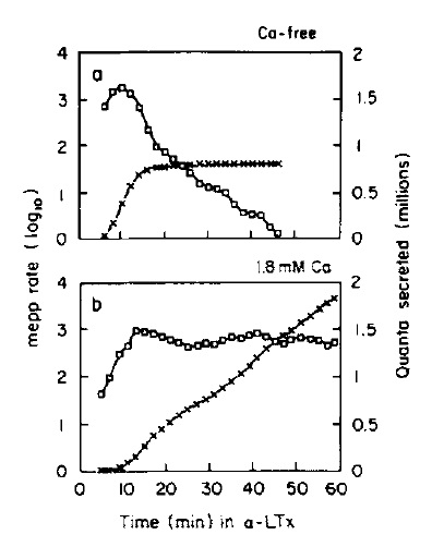 Effects of black widow spider venom and Ca2+ on quantal secretion at the frog neuromuscular junction.
