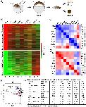 Fig 1 Transcriptome analysis of stage 12 animal cap explants. (A) Illustration of mRNA injection four-cell and animal cap excision at stage (St.) 9. Animal caps were cultured until St. 12 and collected for RNA-seq with or without cell dissociation (Diss). (B) Heat map showing fold changes of the cell dissociation and atypical epidermis signatures. Atypical epidermis corresponds to uninjected animal caps cut at stage 9 and cultured until stage 12; these controls and the dissociated cells correspond to experiment 1 shown in Dataset S1 and are from the same experiment. These gene signatures were also compared with Cerberus, Wnt8, Chordin, FGF8, or BMP4 mRNA-injected animal caps, or with D/V half-embryos derived from the same clutch of embryos. V/D, ventral/dorsal. Rows and columns were left unclustered. Note that many genes induced by dissociation were induced in all conditions, except for BMP4 mRNA-injected animal caps and ventral halves. Genes in the atypical epidermis signature were only induced by BMP4 injection and in ventral halves. A correlation matrix of the animal cap dissociation (C) and atypical epidermis signatures in the RNA-seq libraries (D) are shown. Correlation scores were calculated as Pearson correlation coefficients and color-coded as shown in the scale bar on the right of the panel. These results show that the animal cap signatures obtained via RNA-seq readily distinguish neural- and epidermal-inducing conditions. (E) Dissociation signature examined via PCA to analyze dimensionality in nine experimental conditions (BMP/con AC, Ven/Dor, FGF8/con AC, Xnr2/con AC, Wnt8/con AC, Cer/con AC, Diss/con, Dor/Ven, and Chrd/con AC). AC, animal cap; con, control; Dor, dorsal; Ven, ventral. Each axis represents a principal component (PC1 and PC2), with the first one showing the most variation. PCA clustered epidermal-forming conditions (Ven and BMP), neural-inducing conditions (Diss, Cer, Chrd, and D/V), and mesoderm-forming conditions (FGF8 and Xnr2) without systemic bias. Note that epidermal and dissociation conditions lie on opposing quadrants, indicating the greatest differences. (F) Table of genes induced by Cer mRNA, dissociation, Chrd mRNA, and Wnt mRNA in animal caps listed according to Cerberus fold induction. Because Bighead was induced in all neuralizing conditions and ranked second in the list, it was chosen for further analysis. |