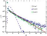 Figure 6. Normalized histogram of the âinstantaneous' diffusion coefficient of mobile AChRs.Measured PDF f(δâ²) of the normalized diffusion coefficient δâ²=δ/DL for the mobile AChR trajectories. Data are obtained from three groups of 10 cells each cultured for (i) 1 day (black circles), (ii) 3 days (blue triangles) and (ii) 6 days (green diamonds). The error bars show the standard deviation of the blue triangles averaged over 10 cells. The red solid line is an exponential fit to all data points, f(δâ²)â0.22 exp (â0.75δâ²). The blue dashed line shows the measured f(δâ²) for the silica spheres undergoing normal Brownian diffusion.