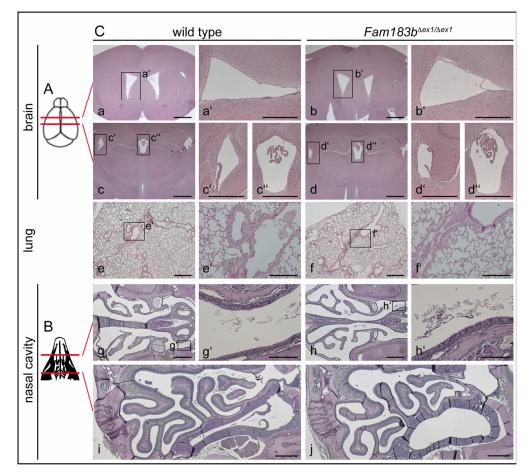Figure 5. Histological analysis of Fam183b-mutant tissues. (A) Schematic drawing showing the planes of