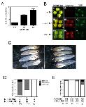 Figure 4 â neil3 and rax are in a common genetic pathway. A. neil3 is expressed in animal caps prepared from rax-injected embryos in a dose-dependent manner. X. laevis embryos were injected with rax RNA (amount shown in graph). Animal caps were explanted when embryos reached early blastula stage and cultured until early gastrula stage. RNA was extracted and neil3 expression was determined by quantitative RT-PCR. Results are normalized to an internal control and then to the neil3 expression level in caps prepared from uninjected embryos. B. The neil3 antisense morpholino oligonucleotide (ASMO) can inhibit expression of a neil3-gfp reporter. The reporter contains a portion of neil3 5â-UTR and coding region, including the ASMO target, fused in-frame with the GFP coding region downstream of the CMV promoter. The reporter was injected alone (top row, ia-c) or with lissamine-tagged COMO (middle row, iia-c) or lissamine-tagged neil3 ASMO (bottom row, iiia-c). Embryos were imaged under bright field (left column, ia-iiia), red fluorescence to detect the lissamine-tagged MOs (middle column, ib-iiib), or green fluorescence to detect GFP (right column, iiia-iiic). C. Injection of a neil3 ASMO results in embryos with small or no eyes. X. laevis embryos were injected unilaterally (one dorsal blastomere at the 4-cell stage) with neil3 ASMO. Left panel: normal eye development on uninjected side. Right panel: small (S) or absent (A) eyes on the injected side. D. Co-injection of neil3 RNA partially rescues knockdown phenotype. X. laevis embryos were injected with neil3 ASMO, RNA, or a mixture of both. Embryos were cultured to st 41 and scored for eye phenotype on the injected side. E. Co-injection of neil3 and rax ASMOs results in a more severe phenotype than injection of either ASMO alone. X. laevis embryos were injected with a low dose of either rax or neil3 ASMO alone or a mixture of both. Embryos were cultured to st 41 and scored for eye phenotype on the injected side. Number of embryos for each condition (n) is shown below each column in D and E.