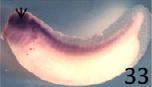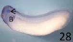 bnip3 (BCL2/adenovirus E1B 19kDa interacting protein 3) gene expression in Xenopus laevis embryo, assayed via in situ hybridization, NF stage 33, lateral view, anterior left, dorsal up.