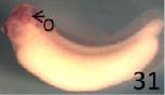 e2f7 (E2F transcription factor 7) gene expression in Xenopus laevis embryo, assayed via in situ hybridization, NF stage 31, lateral view, anterior left, dorsal up.