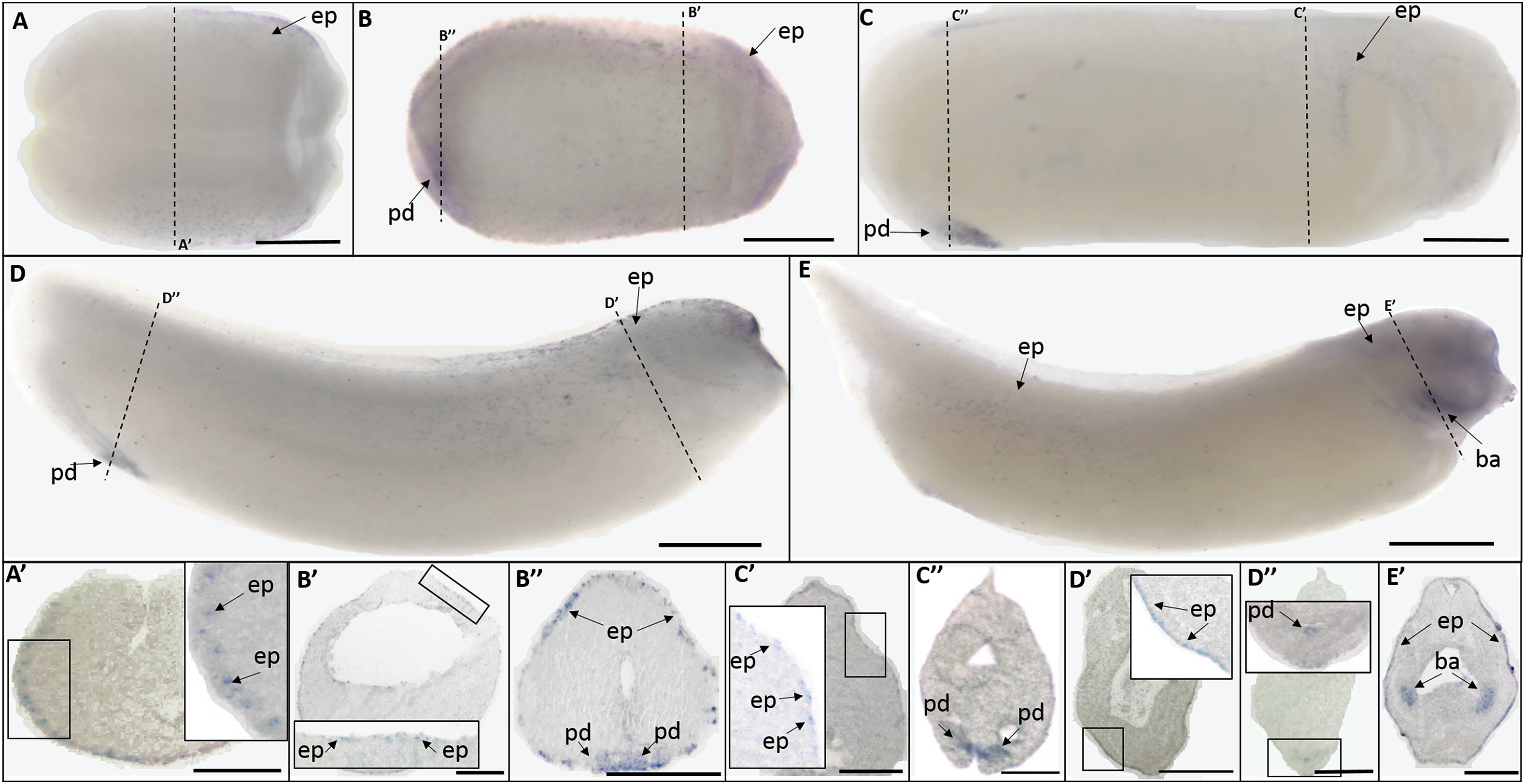 Expression of trpv channels during Xenopus laevis embryogenesis.