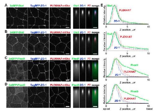 Rao, Formin-mediated actin polymerization at cell-cell junctions stabilizes E-cadherin and maintains monolayer integrity during wound repair. 2016, Pubmed
