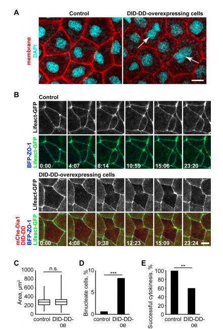 Watanabe, mDia2 induces the actin scaffold for the contractile ring and stabilizes its position during cytokinesis in NIH 3T3 cells. 2008, Pubmed