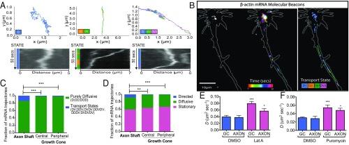 Single-molecule analysis of endogenous β-actin mRNA trafficking reveals a mechanism for compartmentalized mRNA localization in axons.