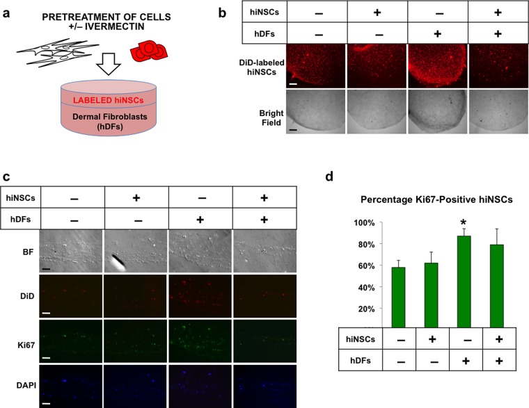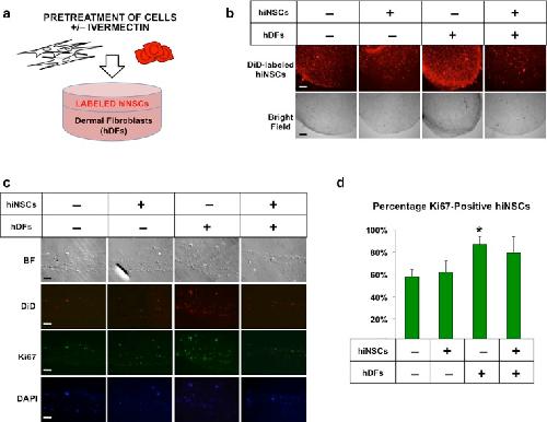 bar: 100 μM. (d) Quantification of Ki67-positive DiD-labeled