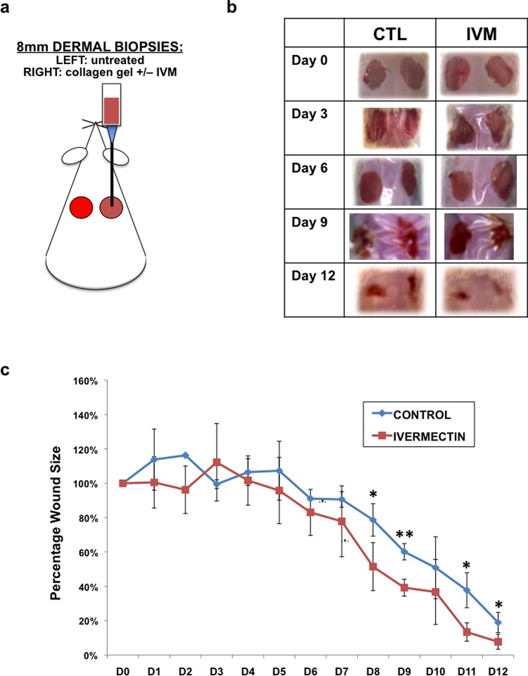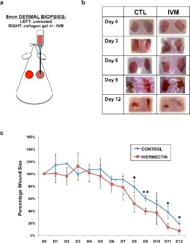 ivermectin or DMSO (control) were pipetted onto the wound and allowed