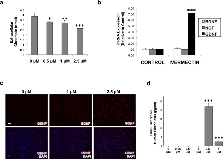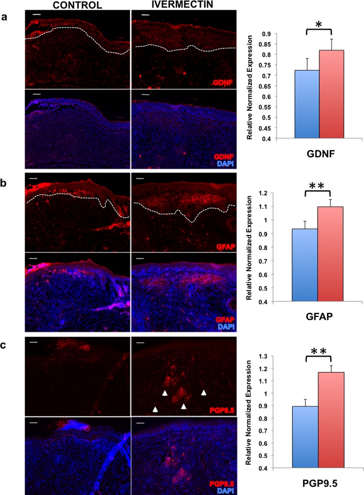 GDNF expression with increasing ivermectin concentration, scale bar: