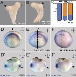 Figure S5: Related to Figure 4. Polycystin-2 function in LR axis formation is independent of canonical Wnt signaling (A-C) Wnt-dependent double axis formation. Injection of wnt8a mRNA resulted in >75% of conjoined twinning (A, C). Co-injection of Pkd2-MO resulted in a very moderate drop of twinning rates to approx. 70% (B, C). Quantification of results (C). Arrowhead indicates induced secondary axis. (D-F) Wildtype expression of brachyury during gastrulation in control specimens (D) was reduced (E) or lost (F) after injection of Xnr3-MO into the dorsal marginal zone (DMZ), demonstrating that Xnr3 was required for dorsal bra expression. Bisected embryos in Dâ, Eâ and Fâ highlight these effects. |