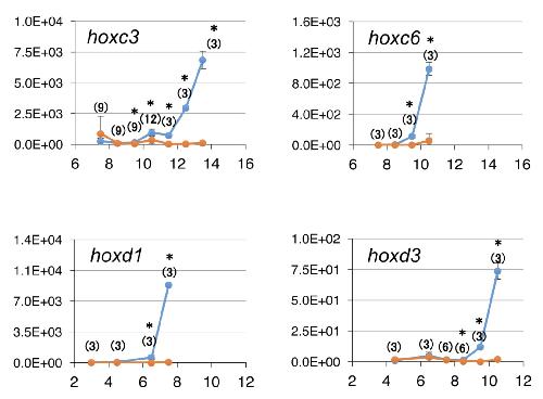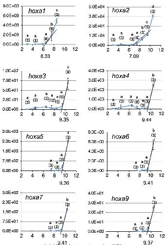 Fig. 3. Expression analyses of hox genes by qPCR. [part 3]