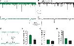 Fig 4. IPSCs mediated by α and αβ GluClRs.(A-B). A whole-cell recording from HEK293 cell expressing α GluClRs (A) or αβ GluClRs (B) in co-culture with primary neurons. C. Expanded view of a segment from (A) showing isolated IPSCs that rise rapidly to a peak before decaying back to baseline. D. Expanded view of a segment from (B) showing isolated IPSCs that decay faster than those in (C). E. Inhibition of IPSCs mediated by α GluClRs by picrotoxin. (F-H). Group bar plot showing the mean IPSC decay time constant (F), 10–90% rise times (G) and peak amplitude (H) of α and αβ GluClRs. ** p < 0.01. Holding potential was −70 mV.