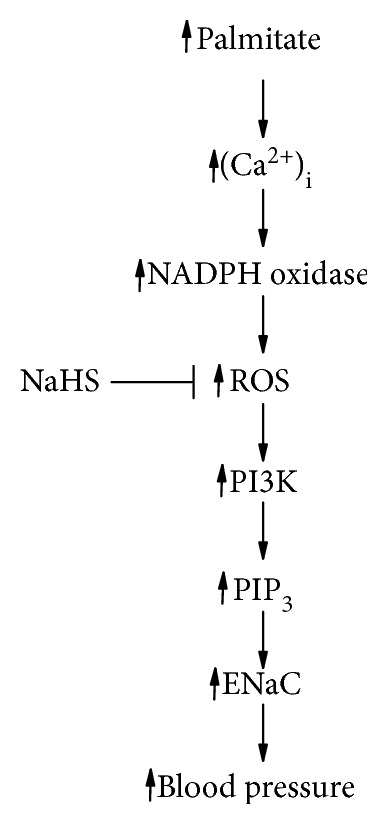 Figure 9. The proposed mechanism by which PA upregulates ENaC probably via a sequential pathway associated with elevation of intracellular Ca2+, ROS via an NADPH oxidase, and PIP3 via PI3K to elevate blood pressure.