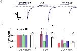 Fig. 4. Impact of ANK2-C terminus and its mutant E1813K on functional KCNH2 expression in Xenopus oocytes. A, Mean current traces obtained by depolarization to 45â¯mV with tail currents at â100 mV with the standard error value indicated by light shading (nâ¯=â¯20 each) for channels formed by KCNH2 and KCNH2-H562R (left), as well as coexpression of the C-terminal domain of ANK2 (âANKâ, middle) or its mutant E1318K (âANK-E1318Kâ, right). B, Normalized peak tail currents from experiments as in A for four independent batches of oocytes (n = 20 each). Data are means ± s.e.m. The blue bars correspond to the experiment in A, the open bars are means of all experiments. n.s. not significant; ***P < 0.001. (For interpretation of the references to colour in this figure legend, the reader is referred to the Web version of this article.)