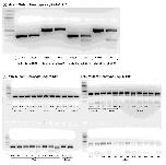 (a) Full - DNA gel showing the PCR product for each l1cam F0 CRISPR mutant and control, before and after cutting with T7 endonuclease I.