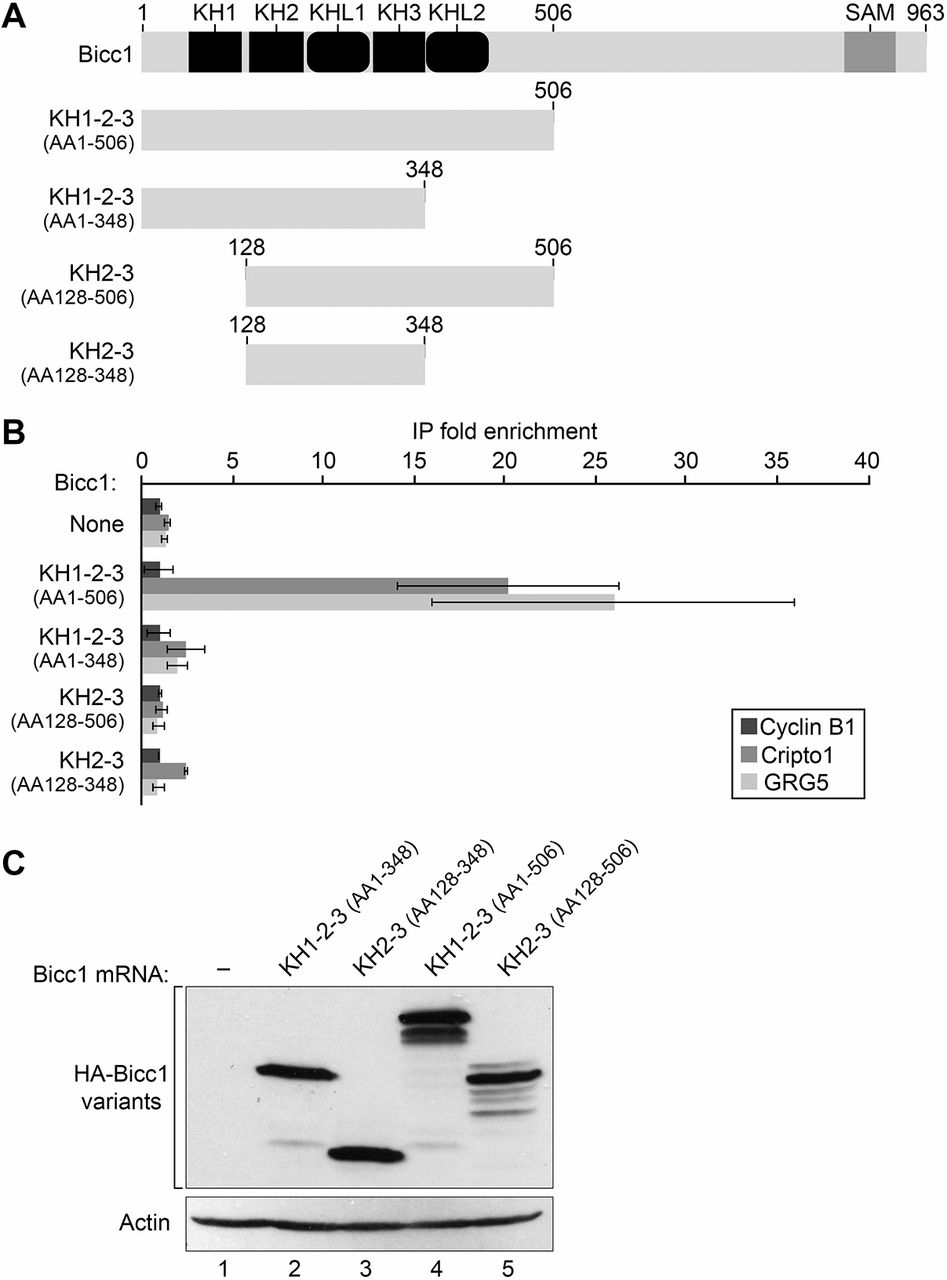 Determinants of RNA binding and translational repression by the Bicaudal-C regulatory protein.