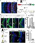 (D and F) Retinal sections from animals that were heat-shocked (+HS) or not (âHS), immunostained for rhodopsin and BrdU. Nuclei are counterstained with DAPI (blue). Arrows point to the injury site. The number of retinas tested for each condition is indicated on the corresponding bar.