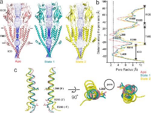 Sauguet, Crystal structures of a pentameric ligand-gated ion channel provide a mechanism for activation. 2014, Pubmed , Xenbase