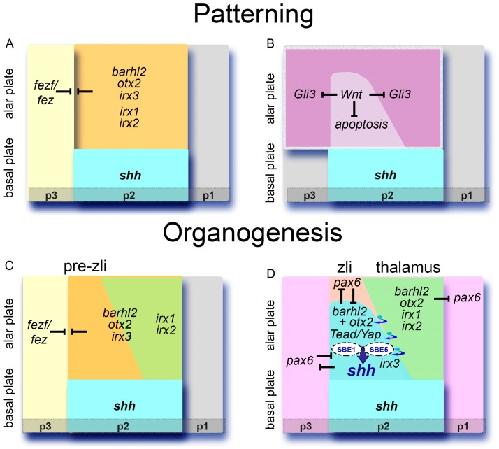 Zeltser, Shh-dependent formation of the ZLI is opposed by signals from the dorsal diencephalon. 2005, Pubmed